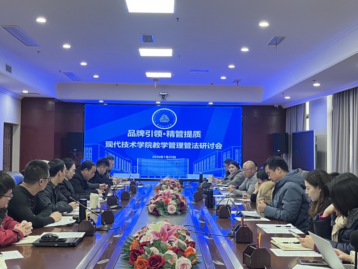 1月20日上午,现代技术学院在中心楼902会议室召开2025年教学管理管法研讨会。本次会议以“品牌引领·精管提质”为主题,旨在系统总结教学管理经验,深入探讨专业建设与教学改革路径,推动学院教育教学高质量发展。学院相关领导、各教研室负责人参加会议。