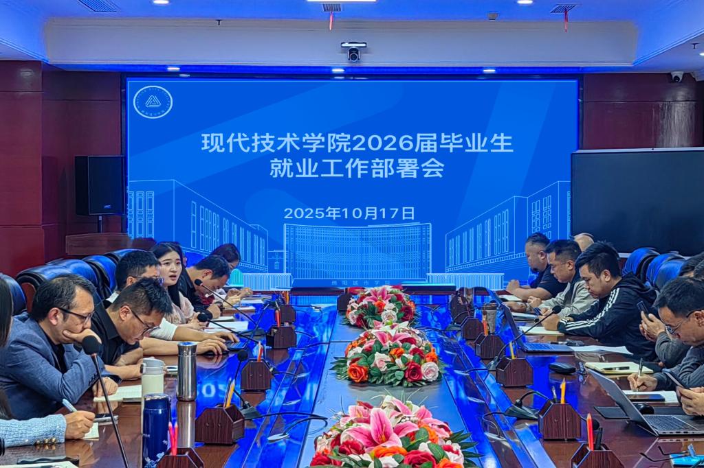 为科学谋划就业工作路径,实现毕业生就业“数量与质量双提升”,10月17日下午,现代技术学院在中心楼902会议室召开2026届毕业生就业工作部署会。会议由现代技术学院学工办主任、博韵学生社区区长陈婕主持,院长王梓龙、副院长金启刚、院长助理黄振华、教研室主任敖文娟、实习实训基地主任陈翱、专业集群副主任徐学林、综合办副主任顾家、各教研室负责人及全体26届毕业班辅导员参会。主要围绕总结经验、明确目标、细化举措、协同推进四个方面展开,全面部署了2026届毕业生就业工作,进一步凝聚育人合力,提升就业工作实效。