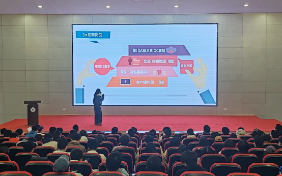 活动由现代技术学院机械制造与设计教研室主任马小凤主持并致辞。为帮助学生把握行业动态与岗位要求,宣讲会设置企业分享环节。安费诺永亿(海盐)通讯电子有限公司代表系统介绍了5G通信与高端天线技术领域的发展趋势及人才能力要求;九州集团代表则通过可视化方式,展示了智能终端研发等核心岗位的职业发展路径。两家企业均围绕“人才适配标准”与“产业前景”展开深入解读,为学生提供清晰的就业导向。