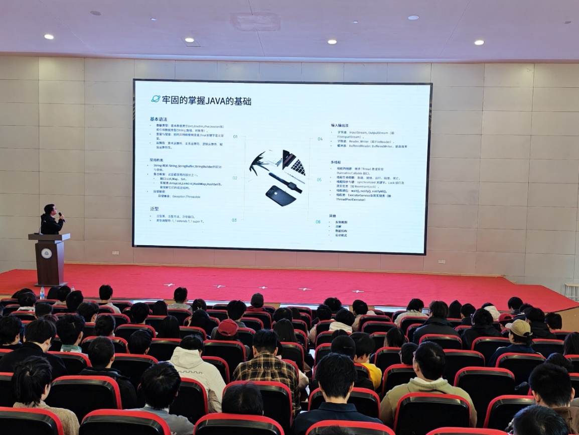 上午,成都软思同创科技有限公司创始人林青松先生为计算机大类毕业生带来《应届大学毕业生就业及成长方向经验分享》专题讲座。他围绕Java软件工程师、产品经理、测试工程师三大岗位方向,系统解析了各岗位的核心技能要求、职业发展路径与行业前景,并结合当前技术发展趋势,为学生提供了切实可行的职业规划建议。在互动环节,学生们踊跃提问。针对“程序员是否会被AI替代”的疑问,林青松指出:“AI目前更多是提升开发效率的辅助工具,尚无法替代程序员的创造性思维与系统架构能力。”对于“企业最看重哪些素质”的问题,他强调:“除了扎实的专业基础,持续学习能力与团队协作精神同样重要。”