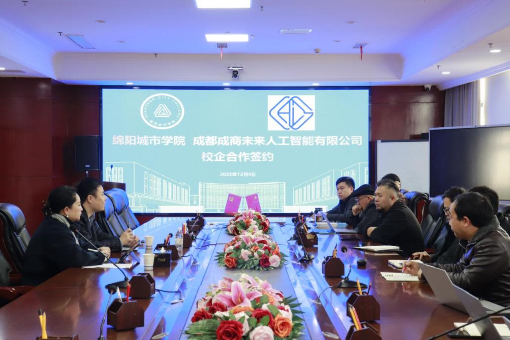 为深化产教融合,精准对接人工智能产业人才需求,2025年12月9日,成都成商未来人工智能有限公司总经理陈鑫一行莅临绵阳城市学院现代技术学院,双方隆重举行校企合作协议签订暨“一师联一企”实习实训基地授牌仪式。此次合作旨在搭建校企协同育人平台,破解人才培养与产业需求脱节难题,为区域人工智能产业高质量发展注入新动能。