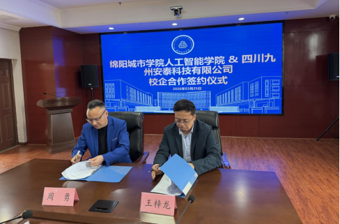 为深入贯彻落实国家网络安全战略,推动产教融合走深走实,3 月 25 日,四川九州安泰科技有限公司董事长周勇、总经理赵纯辉一行莅临绵阳城市学院人工智能学院,就网络安全领域校企协同育人开展深度调研交流。双方围绕技术研发协同、科技成果转化、人才供需对接等核心议题进行专题研讨,达成多项重要合作共识,并隆重举行校企合作签约仪式。这一举措标志着绵阳城市学院在网络安全校企协同育人领域率先取得阶段性突破,为构建政产学研用一体化育人新模式奠定了坚实基础。