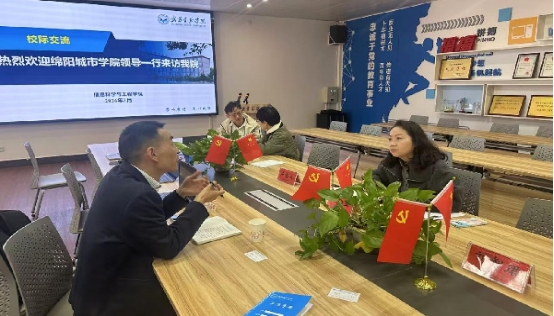 为优化专业结构、提升人才培养质量,扎实推进 2026 版人才培养方案修订工作,3 月 27 日上午,绵阳城市学院副校长周海波率人工智能学院调研团队,前往武昌首义学院信息科学与工程学院开展专题调研交流。人工智能学院院长王梓龙、计算机科学与技术教研室主任邓强、软件工程教研室副主任杨崇尉、电子信息工程教研室副主任覃国辉参加调研。武昌首义学院信息科学与工程学院院长梁意文、副院长马玲及各系负责人热情接待,交流会由马玲主持。